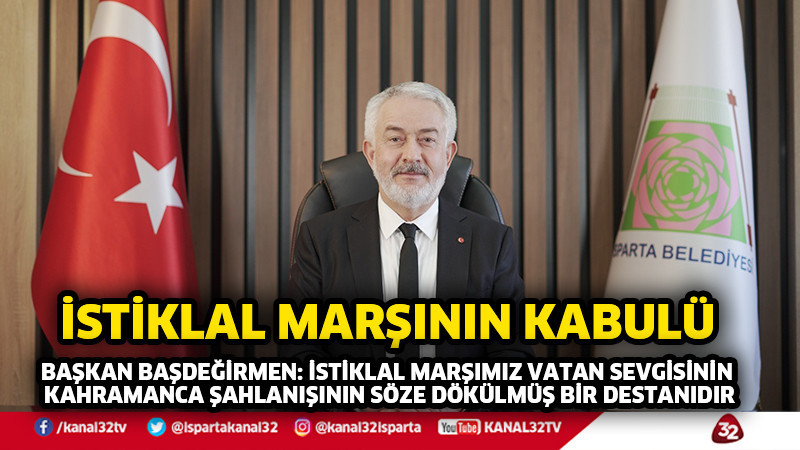 Isparta Belediye Başkanı Şükrü Başdeğirmen, 12 Mart İstiklal Marşımızın kabulü ve Mehmet Akif Ersoy’u anma günü nedeniyle bir mesaj yayımladı. Başkan Başdeğirmen mesajında "İstiklal Marşımız bugüne kadar olduğu gibi bundan sonrada vatanımızın semalarında yankılanmaya devam edecektir" dedi.