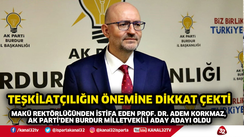 MAKÜ REKTÖRLÜĞÜNDEN İSTİFA EDEN PROF. DR. ADEM KORKMAZ, AK PARTİ’DEN BURDUR MİLLETVEKİLİ ADAY ADAYI OLDU